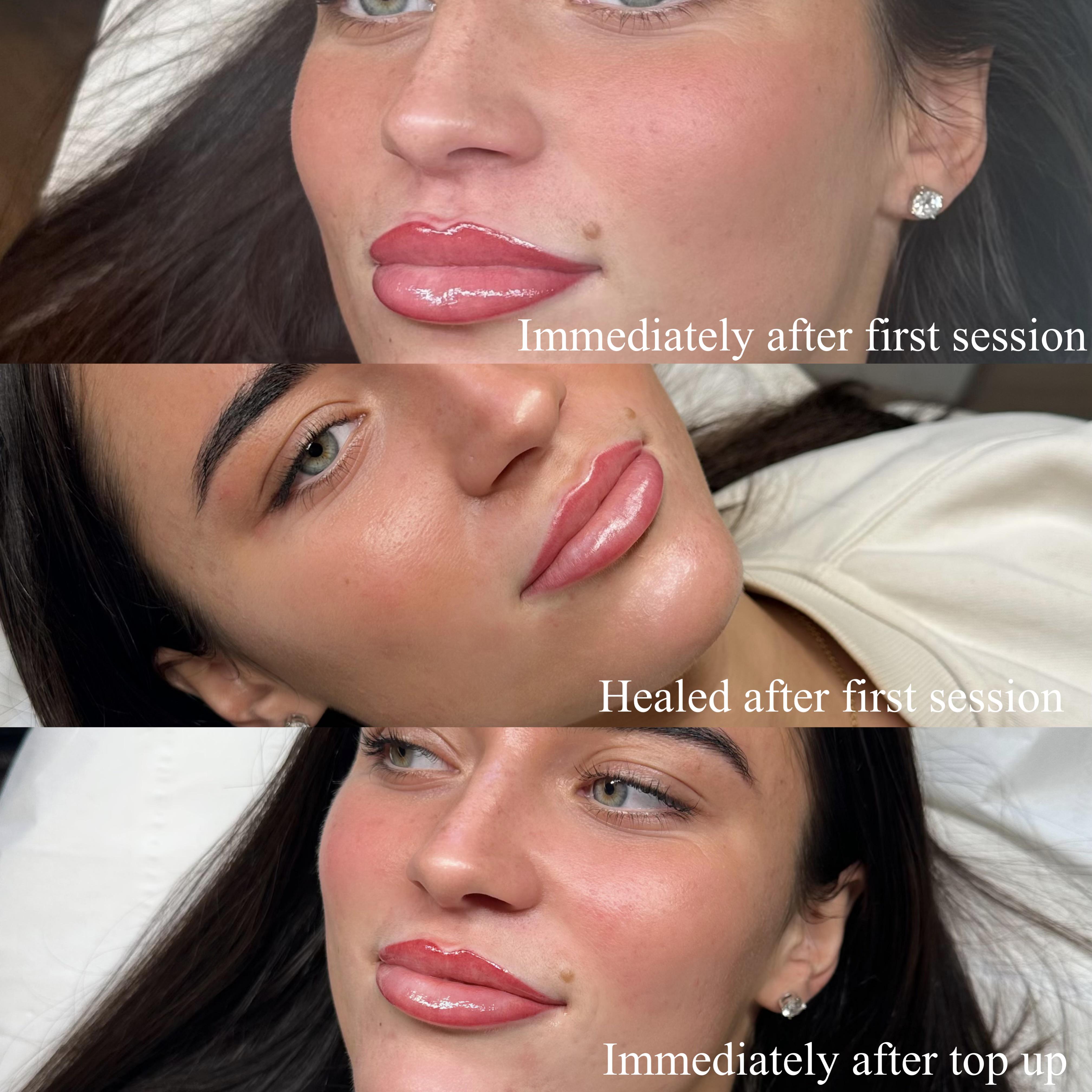 It is best if your lips are in top condition before having them done. Give them a little attention in the days before your appointment: gently exfoliate with a soft toothbrush, apply lip balm regularly, and drink plenty of water to help hydrate your skin.